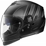 | ✚✚✚ Nolan N43E Trilogy Voyage Helmet (Flat Black/Anthracite, X-Small) Crossover design with quick-change accessories allows for customized looks and functions for every ride. Comes with the clear shield, the integrated sun shield, the peak and the removable chin bar. Redesigned GE Lexan chin bar is EPS lined and accepts the new chin curtain (included). Mounted with strong stainless-steel latches, it passes the tests for full-face helmets of the European standard ECE-2205. VPS (Vision Protection System) short dark shield mounted on the inside of the helmet and moving independently from the face shield. Being as thick as a regular outer shield, it provides real eye protection. It can be replaced easily if it gets damaged and is also available in amber, light blue and light smoke for different riding conditions. It is easily operated by a large rubber coated slider on the left side of the helmet. Quick-change shield is optically correct, UV 400, and fitted in an exceptionally large eye port. Several opening positions are possible thanks to the updated shield mechanism. It accepts the Pinlock anti-fog insert (included). The short black peak can be installed in seconds instead of the clear shield. Ready for the N-Com communication system. Lightweight aerodynamic polycarbonate shell with built-in spoiler for improved stability (3.6 pounds with all accessories). Fully removable and washable Clima-Comfort liner is antibacterial, anti-fungal and wicking. Super-efficient JSW top vent with exhaust grid in the rear spoiler; works in conjunction with the air channels along the crown. It is operated by a glove-friendly rubber slider. Microlock (adjustable quick-release) retention system. Velour chin-strap padding.