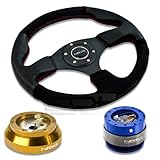 | ✚✚✚ NRG-SRK-140H-RG+012R-S+200BL, NRG Innovations 12.5" 320mm Black Leather Red Stitch Suede Grip Racing Steering Wheel Combo with 6 Hole Short Hub Adapter with Gen 2.0 Blue Quick Release Kit SRK-140H NRG Quick Release features many options that conventional ball-locking quick release system do not. It is specially engineered with raised sections to prevent the scratching and stretching of the hub while a self locking feature adds increased safety and functionality. Features racing styled for added style and look. Each unit is made from the highest quality aircraft grade aluminum and is anodized for maximum durability and finish.