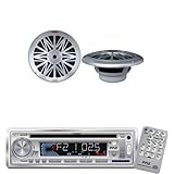 Pyle Marine Radio Receiver and Speaker Package - PLCD3MR AM/FM-MPX IN -Dash Marine CD/MP3 Player/USB & SD Card Function - PLMRS62 200 Watt 6.5'' 2 Way White Marine Water Resistant Speakers (silver Color)